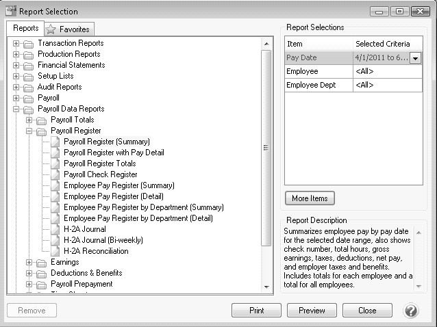 - Select Reports > Reports > Payroll Data Reports > Payroll Register > Payroll Register with Pay Detail.